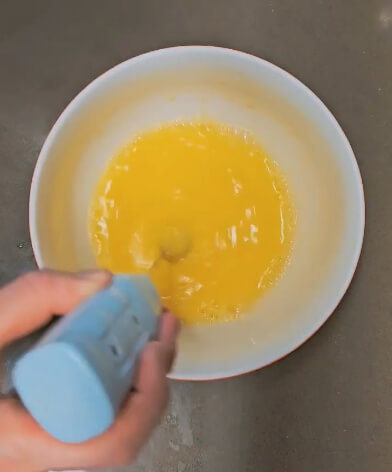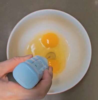 바나나는 잔류 농약을 없애기 위해 흐르는 물에 씻어서 준비합니다. 순서는 상관없지만 큰 볼에 계란 2개를 넣고 잘 섞어주세요. 저는 집에서 카페라테 만들어 먹는 전동 거품기로 계란을 섞어보니 이것도 괜찮았습니다.