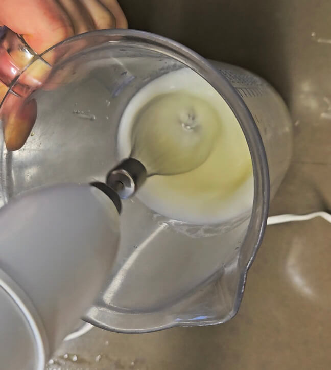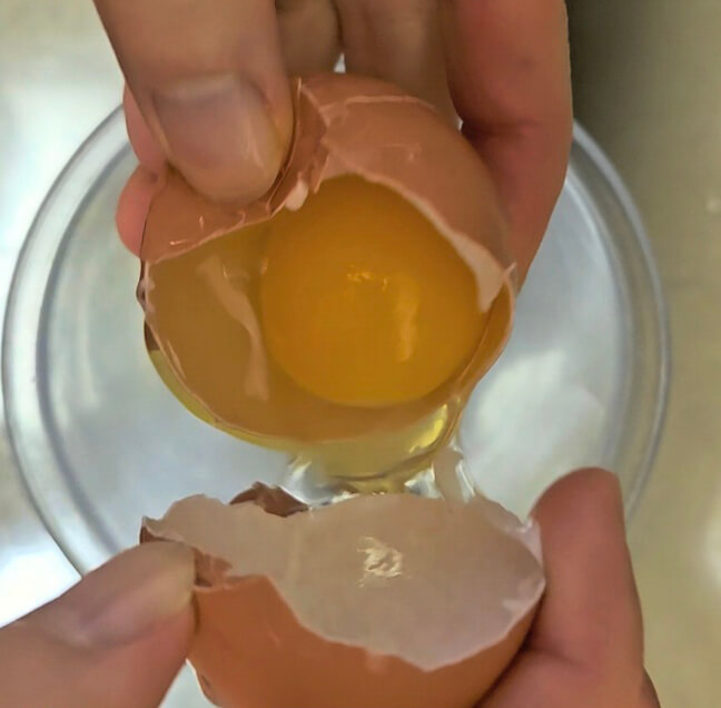 계란 2개는 노른자와 흰자를 분리해 줍니다. 흰자는 거품기를 이용하여 머랭을 쳐줍니다. 머랭을 치는 중간중간 취향에 따라 에리스리톨 한 숟가락과, 소금 한 꼬집을 넣어줍니다.