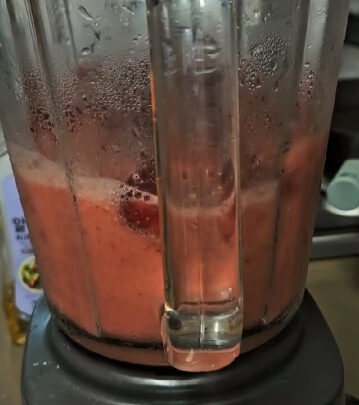 냉동 딸기 하나만 있으면 다른 첨가물 없이도 스무디를 만들 수 있어요. 하지만 단맛이 살짝 아쉬울 것 같으면 알룰로스 한 바퀴 정도 두르고 갈아주면 맛있고 시원하게 스무디를 즐길 수 있습니다. 이것을 얼려먹으면