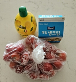 냉동 딸기, 냉동 블루베리, 생크림, 레몬즙, 알룰로스.